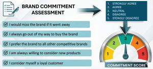 The commitment score is a composite metric made of weighted ratings on a 5 or 7-point Likert scale based on customer responses to a set of five questions: